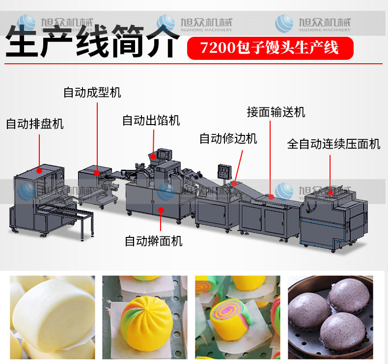 7200包子饅頭生產線,免費學習配方工廠有專業的培訓部門,購買生產線即可免費學習工藝配方,豐富的配方工藝能增加您的客戶源。