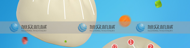 XZ-512包子機,仿手工捏花12個花褶,外形美觀??芍谱鞯姆N類肉包、肉菜包、菜包、圓饅頭、奶黃包、豆沙包、叉燒包、南瓜餅、純白糖包,多種場所輕松適應。