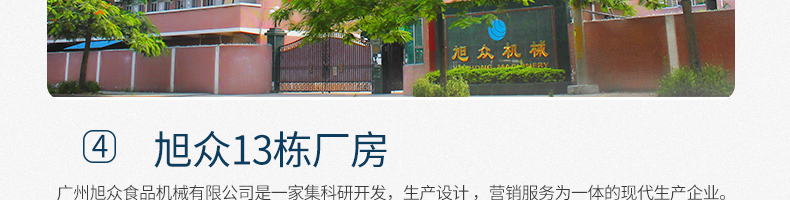 廣州旭眾食品機械有限公司是一家集科研開發,生產設計,營銷服務為一體的現代化生產企業?,F代化生產車間,精湛制造技術,所產機械歷經市場重重考驗,不斷贏得海內外客戶的贊譽。