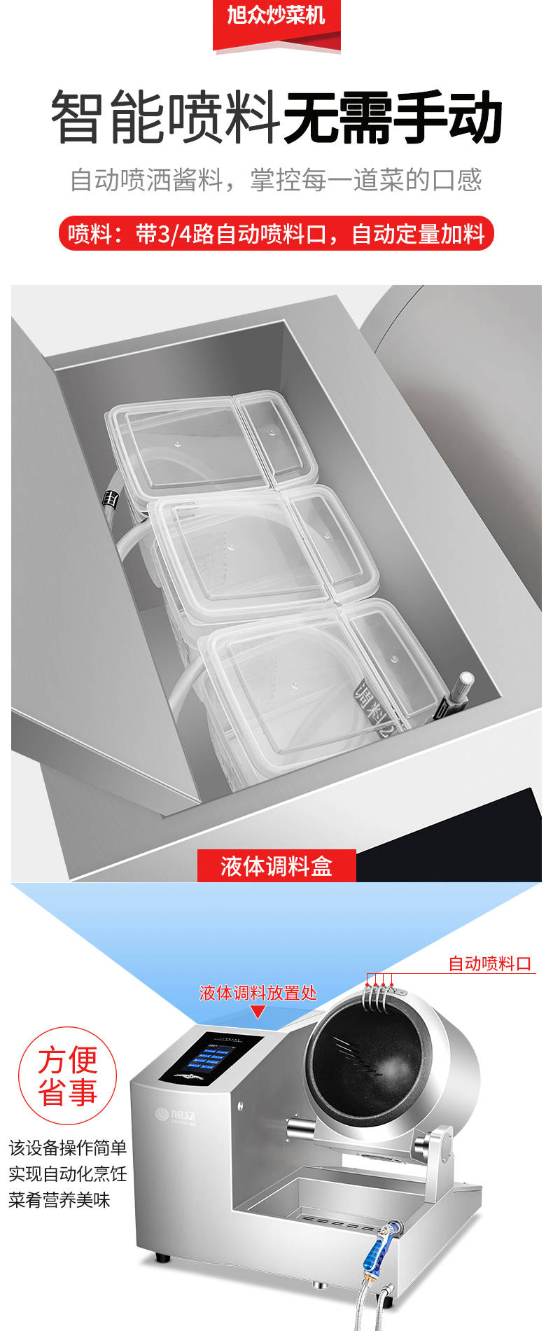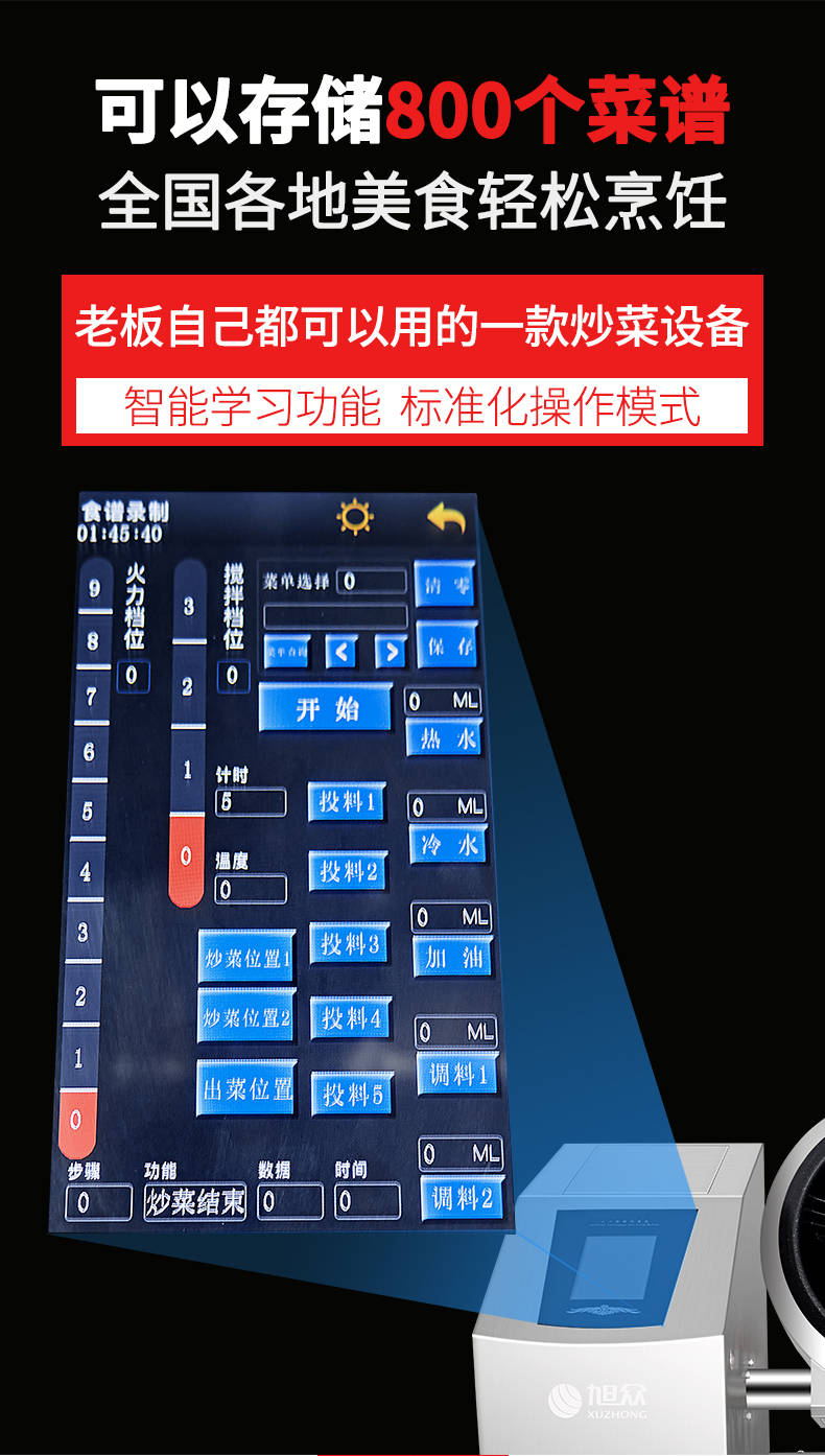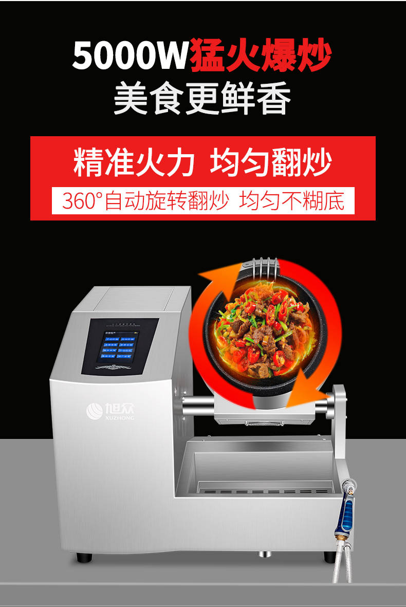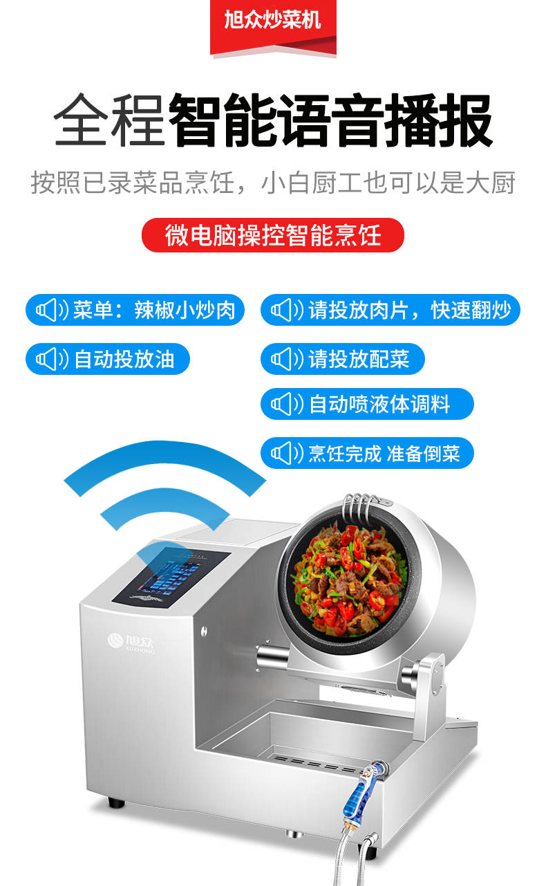 XZ-30TCP臺(tái)式300智能電磁炒菜機(jī)(觸屏+噴料),可以實(shí)現(xiàn)自動(dòng)化烹飪過程的智能化設(shè)備,語音播報(bào)、自動(dòng)噴料、旋轉(zhuǎn)翻炒、快速出菜。實(shí)現(xiàn)自動(dòng)化烹飪,新一代微電腦操控智能烹飪?cè)O(shè)備、顛覆傳統(tǒng)炒菜模式。5000W猛火爆炒美食更鮮香