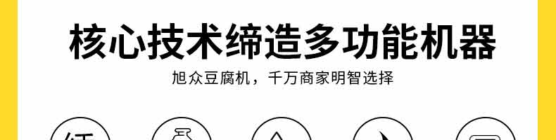 XZ-60智能豆腐機(jī),一機(jī)多用:可生產(chǎn)豆腐系列產(chǎn)品:單色(嫩,老)豆腐、多彩豆 腐、單色豆腐皮、多色豆腐皮、彩色豆腐干、豆?jié){、豆花等豆制品制作,還可以與其他設(shè)備和工藝配套生 產(chǎn)更多的豆制品。
