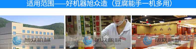 作者:旭眾機(jī)械發(fā)布時間:2017-04-15 11:42查看數(shù):您當(dāng)前的位置:首頁>>產(chǎn)品展示>>豆制品加工系列>>豆腐機(jī)系列