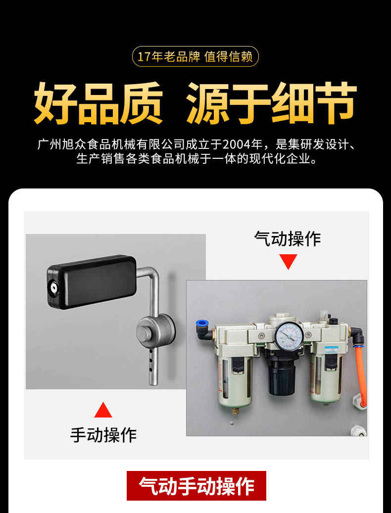 廣州旭眾食品機械有限公司是一家集科研開發,生產設計,營銷服務為一體的現代化生產企業?,F代化生產車間,精湛制造技術,所產機械歷經市場重重考驗,不斷贏得海內外客戶的贊譽。