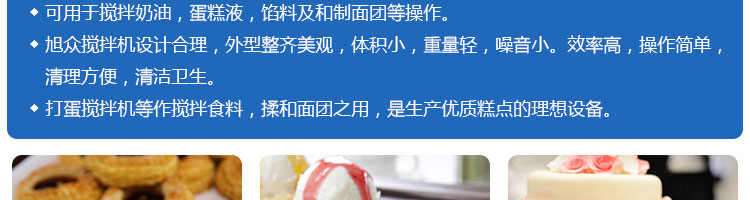 SZM-5型攪拌機(jī),可用于攪拌奶油、蛋糕液、餡料及和制面團(tuán)等操作。打蛋攪拌機(jī)等作攪拌食料、揉和面團(tuán)之用,是生產(chǎn)優(yōu)質(zhì)糕點(diǎn)的理想設(shè)備,適用于酒店、飯店、學(xué)校部門、面包屋以及食品廠家。