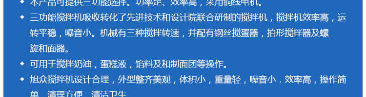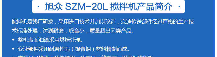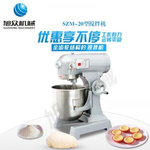SZM-20型四功能攪拌機,可用于攪拌奶油、蛋糕液、餡料及和制面團等操作。打蛋攪拌機等作攪拌食料、揉和面團之用,是生產(chǎn)優(yōu)質(zhì)糕點的理想設(shè)備,適用于酒店、飯店、學校部門、面包屋以及食品廠家。