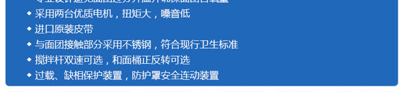 SZH-20型雙速雙動(dòng)和面機(jī),本機(jī)適合攪拌各種面包、包子、饅頭、湯圓、披薩餅面團(tuán),專業(yè)設(shè)計(jì)避免面團(tuán)過(guò)分升溫并確保面團(tuán)含氧量。過(guò)載、缺相保護(hù)裝置,防護(hù)罩安全連動(dòng)裝置。