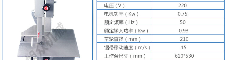 名稱JG-210臺式鋸骨機 電源220V 功率0.75kw 產量 尺寸535*520*985mm 重量43kg 規格 其他