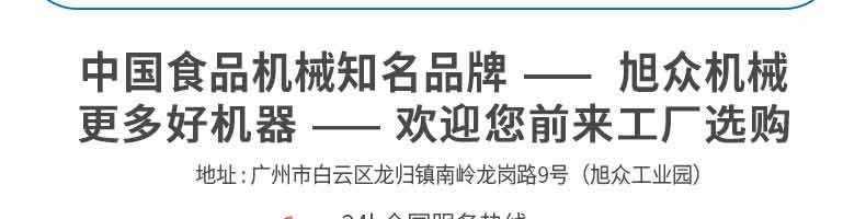廣州旭眾食品機械有限公司是一家集科研開發,生產設計,營銷服務為一體的現代化生產企業。現代化生產車間,精湛制造技術,所產機械歷經市場重重考驗,不斷贏得海內外客戶的贊譽。