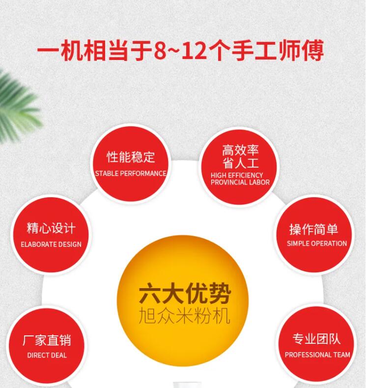 旭眾米粉機(jī),型號多,投資規(guī)模可大可小,除了適用于個(gè)體,還適用于鄉(xiāng)鎮(zhèn)加工廠及城市食品加工廠、民營企業(yè)等。