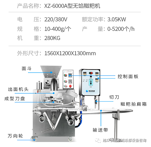 旭眾新款定做糍粑機,是一款生產(chǎn)香甜無餡糍粑的設(shè)備;設(shè)備入料斗容量大,采用雙絞龍送料、變頻無極調(diào)速。產(chǎn)品大小、出皮厚度調(diào)節(jié)自如、使用方便、精確度高,出皮均勻、暢通、產(chǎn)品一次成型,所出產(chǎn)品外形大小統(tǒng)一,遠比手工制作美觀、便捷。